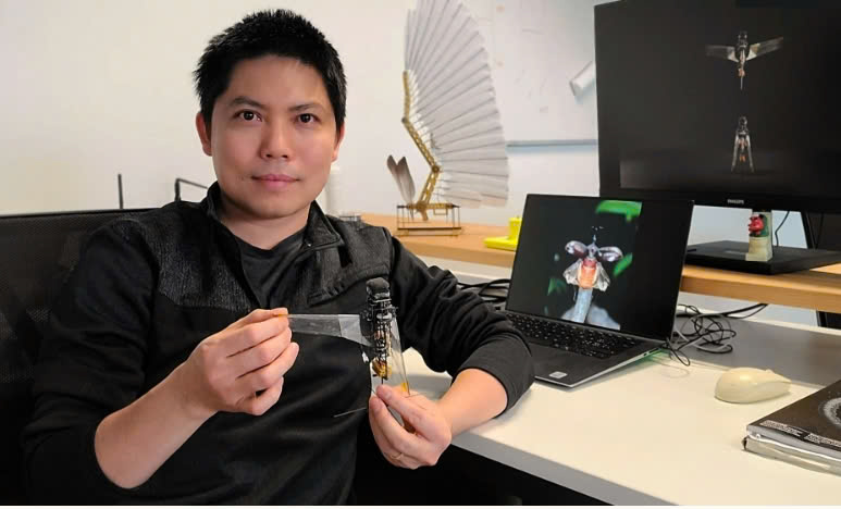 TS Phan Hoàng Vũ cùng cộng sự phát triển thành công robot có thể bay như loài bọ cánh cứng giúp thám hiểm không gian hẹp, tìm kiếm cứu nạn.Robot côn trùng nhỏ ở trạng thái bung cánh bay (phía trên) và trạng thái gập cánh (bên dưới). Ảnh: Nhóm nghiên cứuTS Phan Hoàng Vũ (39 tuổi) là nhà nghiên cứu sau tiến sĩ cấp cao tại phòng thí nghiệm Hệ thống thông minh thuộc Viện Công nghệ Liên bang Thụy Sĩ ở Lausanne (EPFL). Anh đang theo đuổi các kỹ thuật mới trong lĩnh vực robot mô phỏng sinh học
